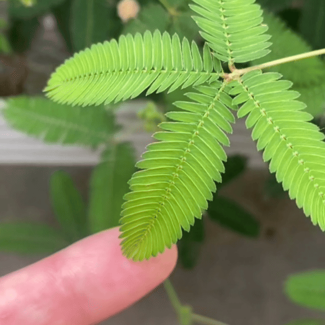 A Mimosa Pudica é diferente: ao menor toque, suas folhas se fecham instantaneamente.