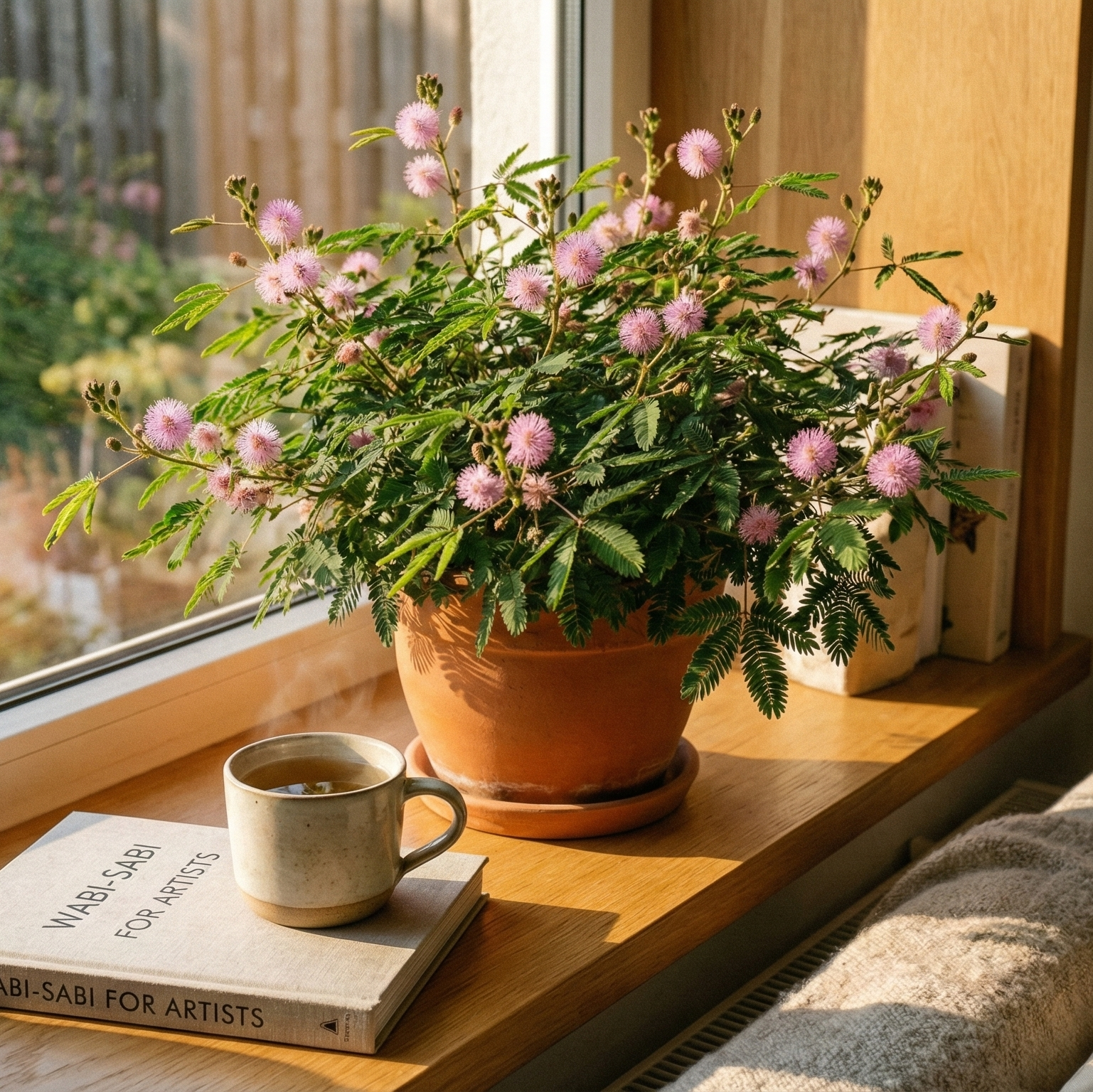 A Mimosa Pudica não fica apenas ali parada.Ao menor toque, ela reage, se fecha e chama atenção imediatamente.É a natureza acontecendo ao vivo, transformando um simples vaso em curiosidade, conversa e descoberta todos os dias.